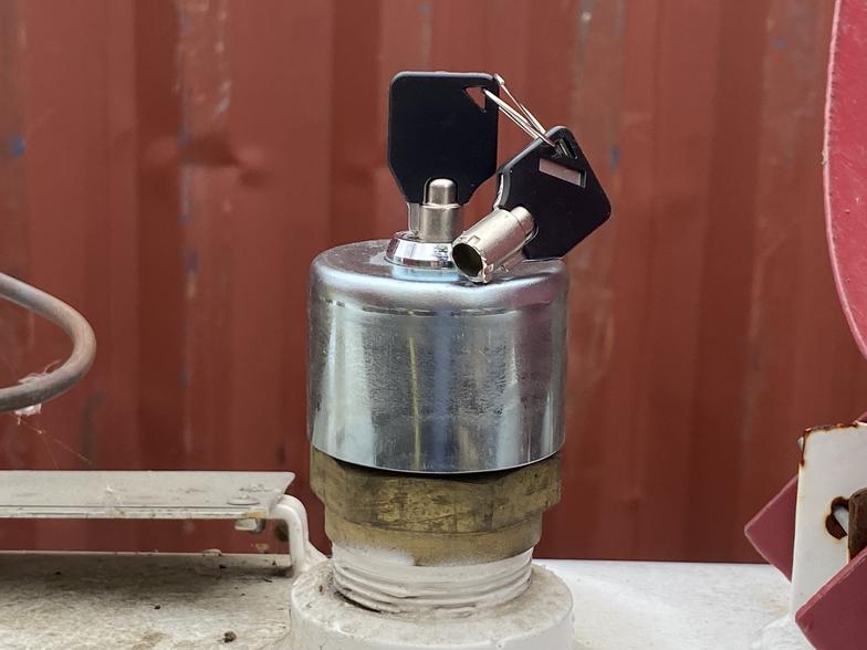 This locking device will prevent unauthorized reconnections to propane tanks that have been disconnected or removed from service. Each set comes standard with a brass plug that can be tightened onto the service valve, an outer locking cap that prevents removal and reconnection, and two keys. Lock and keys are unique to your company. Matching spare keys are available for purchase.